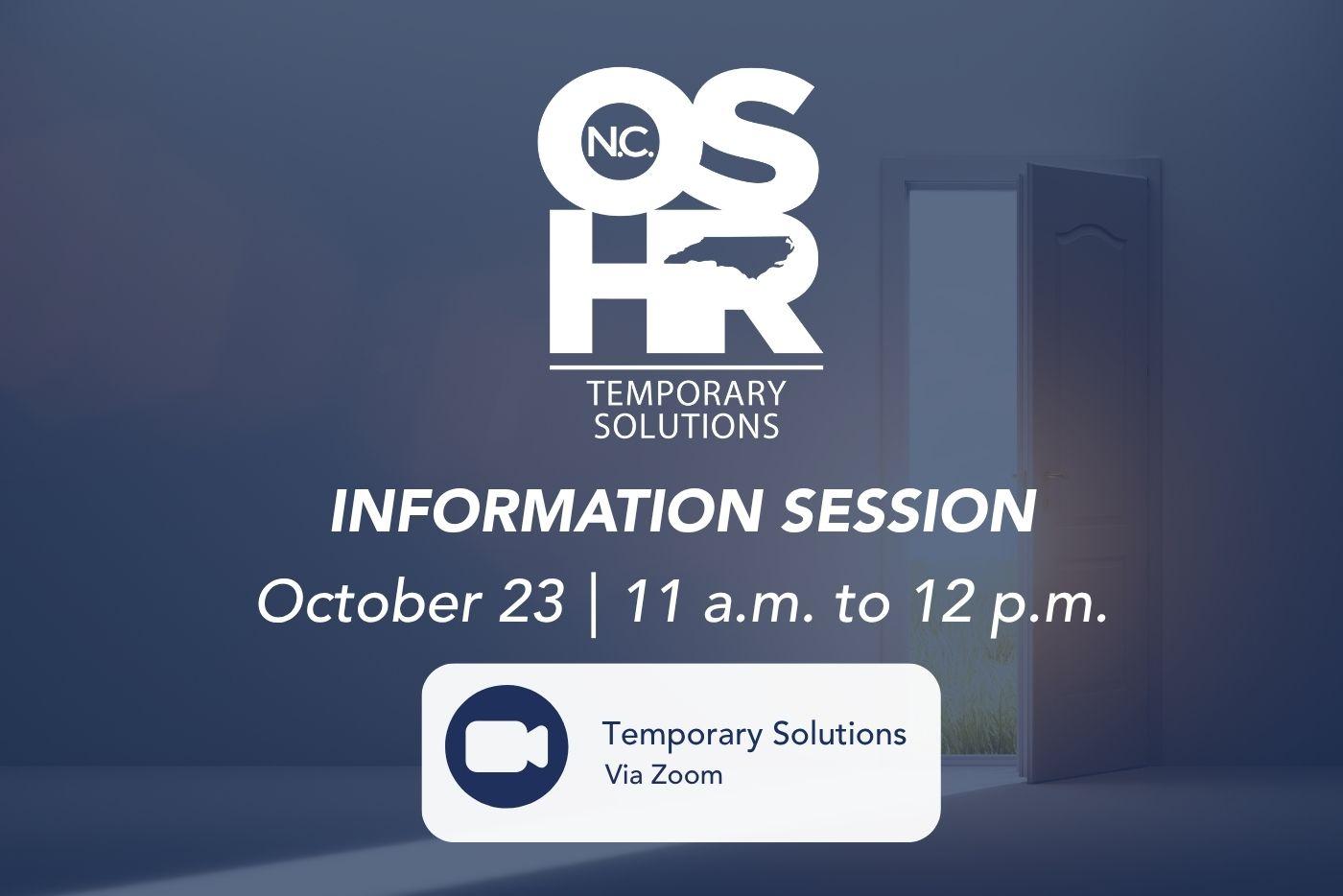Welcome to the NC Office of State Human Resources - Temporary Solutions Information Session! Join us for an hour filled with valuable insights, networking opportunities, and career development resources. Whether you're looking for temporary employment or seeking to learn about state government employment, this event is perfect for you.