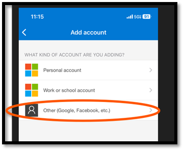 - Select “Other” then “Enter Code Manually” and a new “Add Account” screen appears.